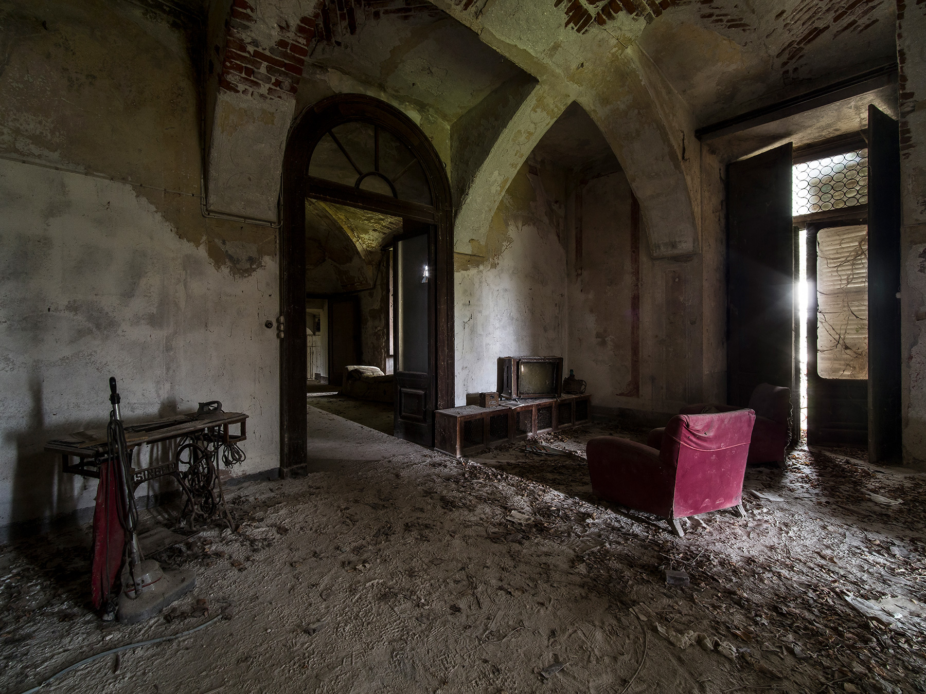 Qui in particolare mi colpisce l’accoppiata tv-poltrona, un rapporto simbiotico che sembra vivere di vita sua.