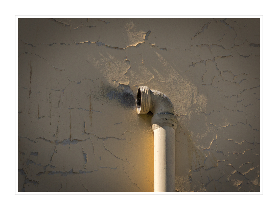 L'alito del tubo, la luce, l'intonaco scrostato, tutto rende questa immagine una delizia per gli occhi.