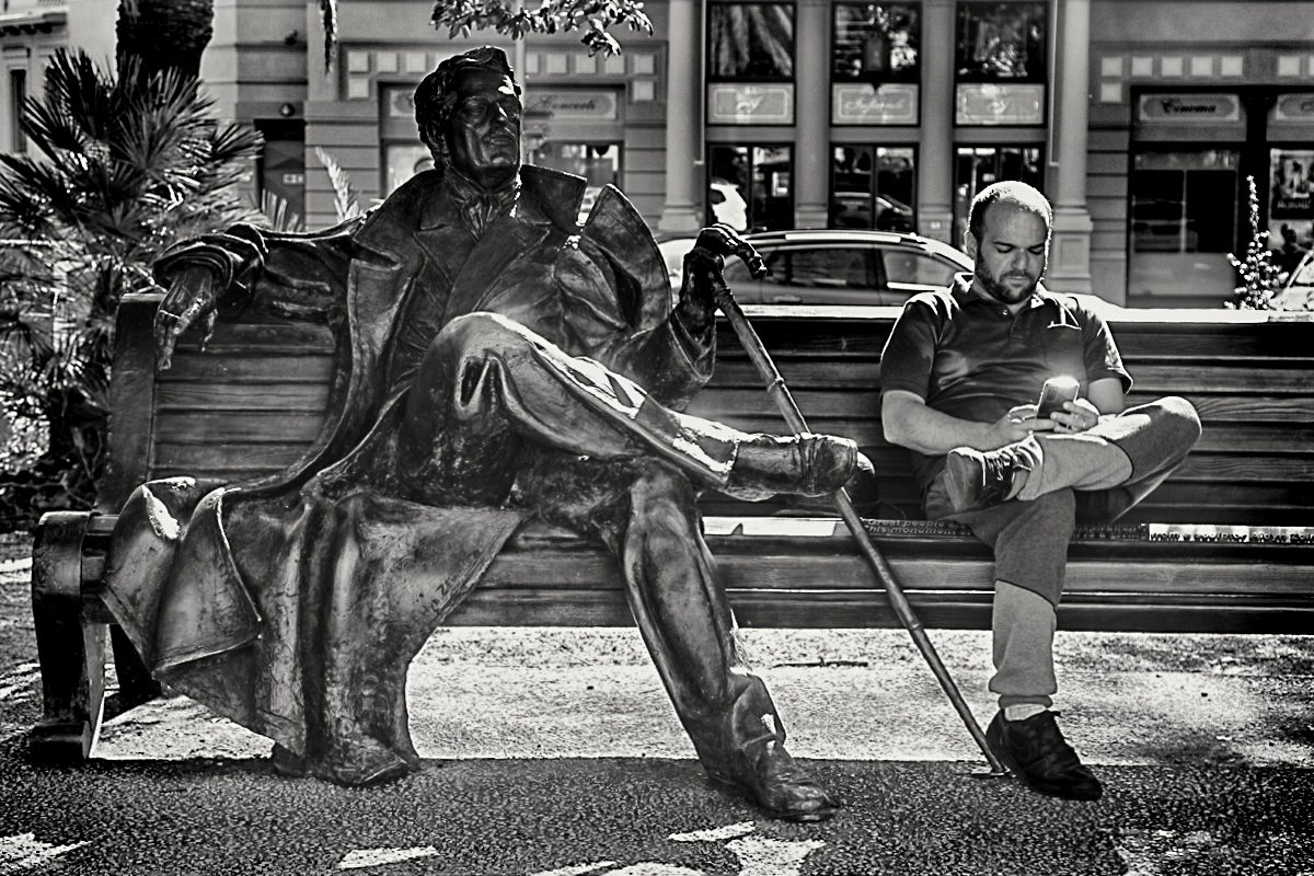 E' bè che dire Tiziano l'immagine parla da sola per come l'hai ripresa, specialmente il posizionamento della statua.. con la seduta contrapposta dell'uomo è stato veramente un bel colpo d'occhio.. Mi piace molto.