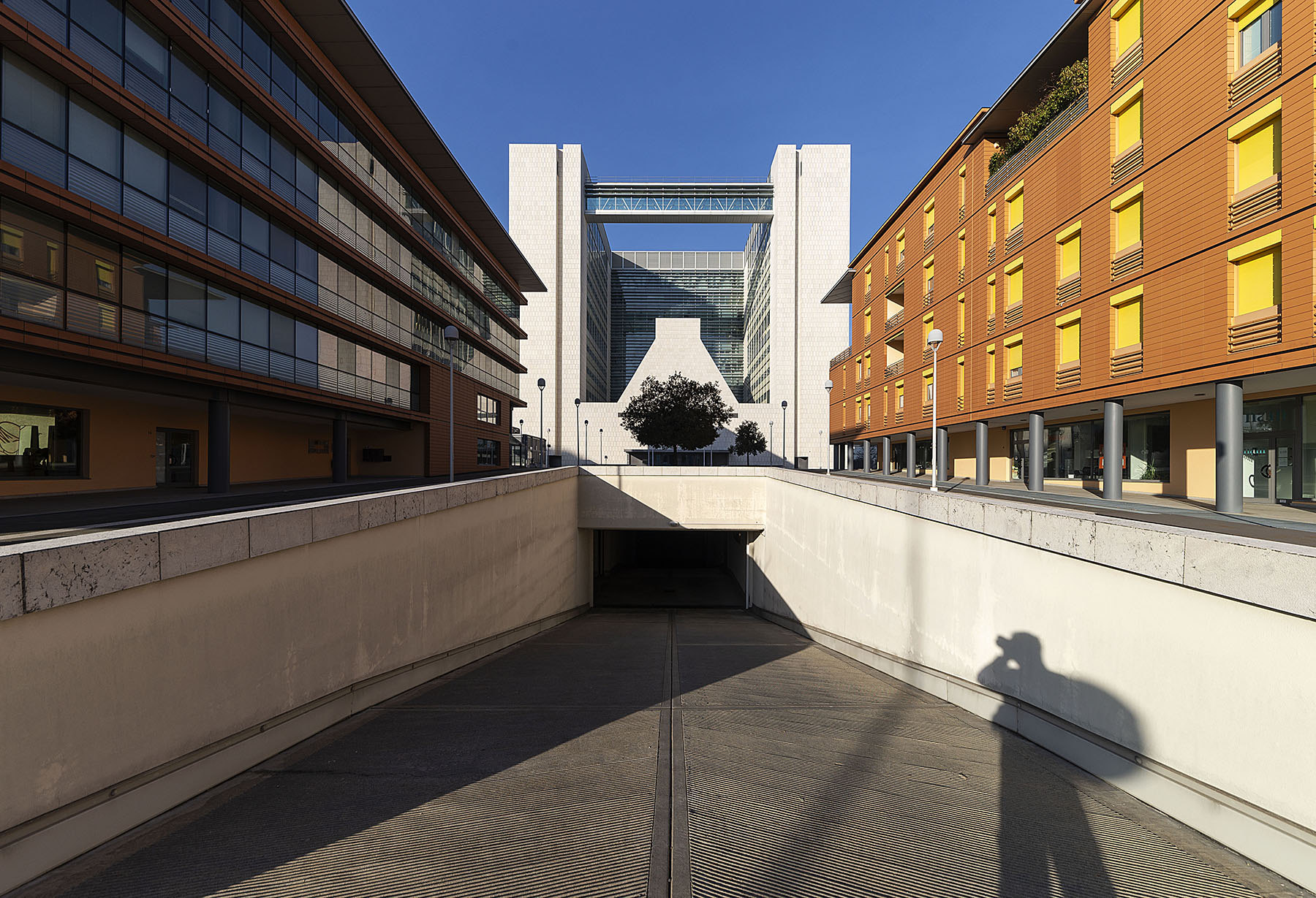 Uno scorcio urbano composto in maniera validissima, assolutamente simmetrica con la rampa e la suddivisione centrale che rappresentano una perfetta guida per lo sguardo, simpatica l'ombra.