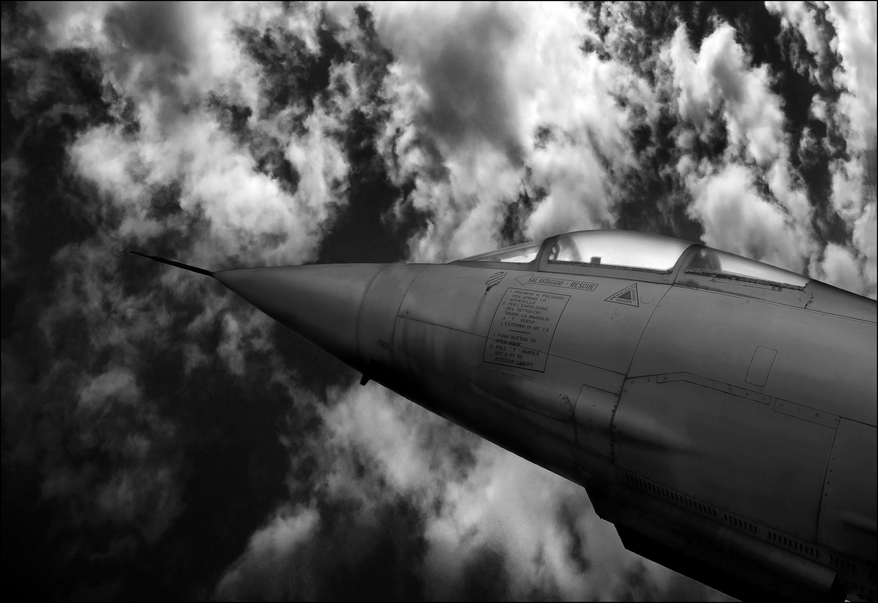 Riccardo grazie per le osservazioni. Sono due esposizioni, una sul cielo e una sul caccia. In post ho lavorato lo scatto per ottenere un Low key con la zona più luminosa sulla cabina.