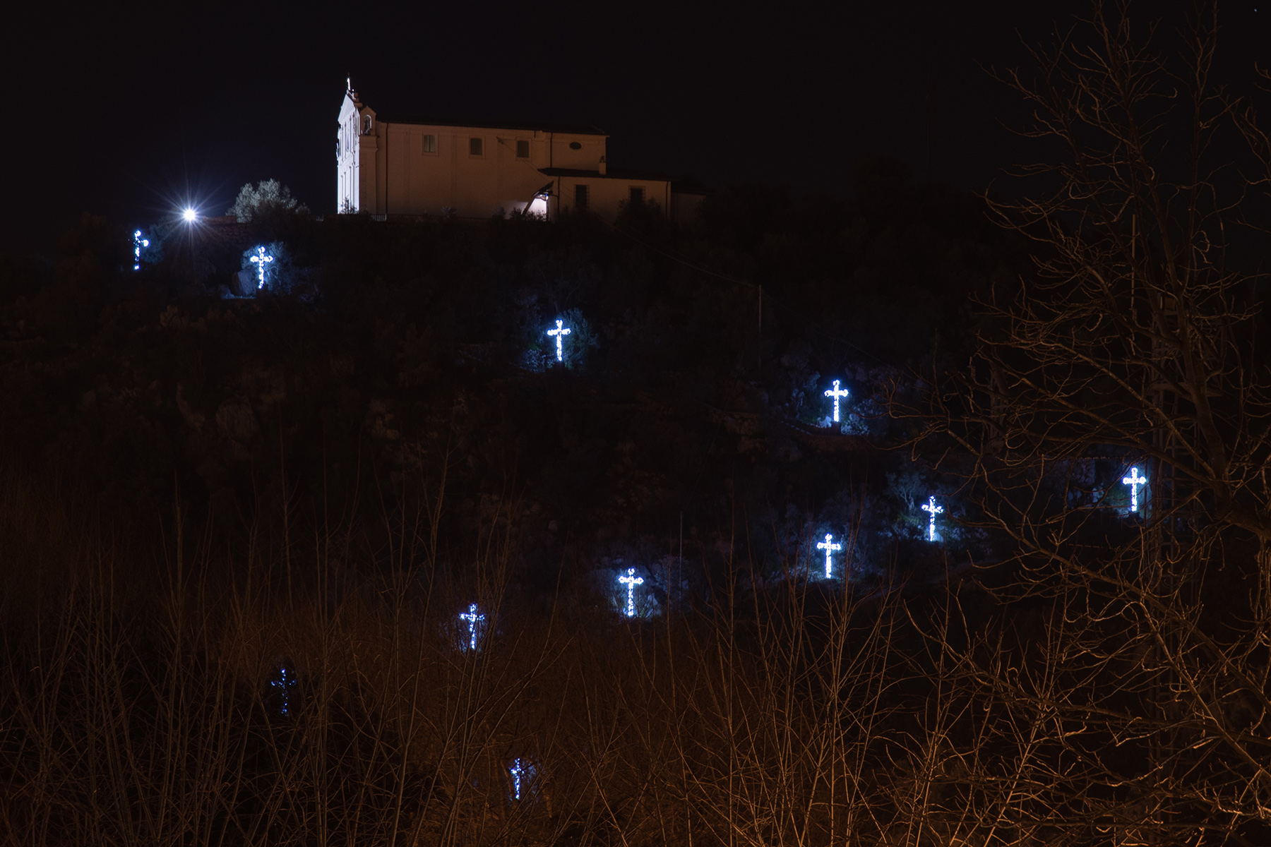 Solo che questa foto con questo mega contrasto, la facciata della chiesa piuttosto avanti con le alte luci, le croci troppo secche e definite...