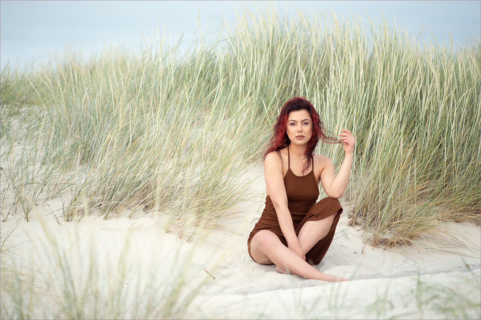 la modella risalta finemente con i suoi colori forti, aiutato anche dalla luce e dal cielo coperto, hai messo in scena un bellissimo ritratto, complimenti a entrambi.