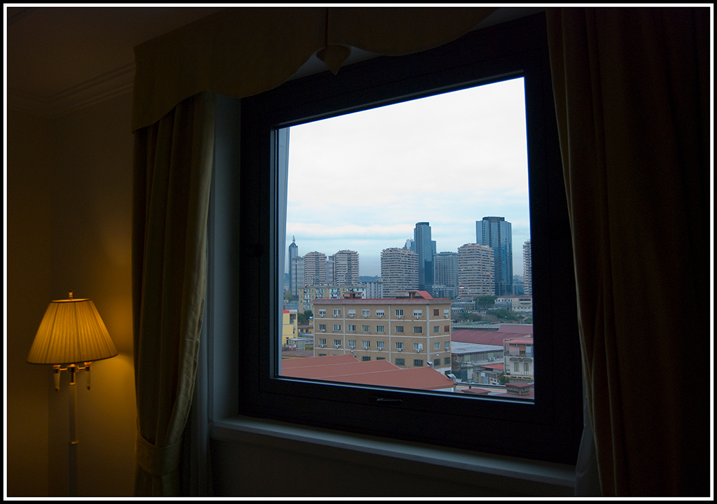 Uno scatto che racconta... la luce calda dell'interno di una abitazione, forse un albergo, da cui si gode in contrasto con la luce fredda dell'esterno la visione dei grattacieli sullo sfondo.