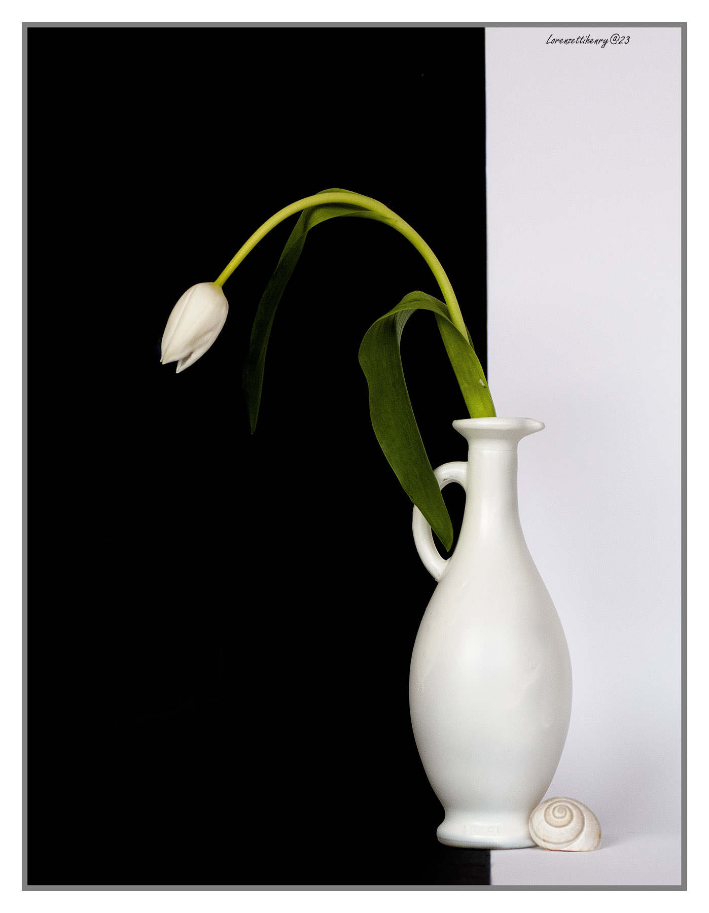 Una composizione molto ma molto ben curata. L'uso dei colori e delle linee sinuose degli oggetti che si alternano a quelle del gambo e del fiore aggiungono profondità che illudono l'occhio. Bravissimo Enrico  _________________