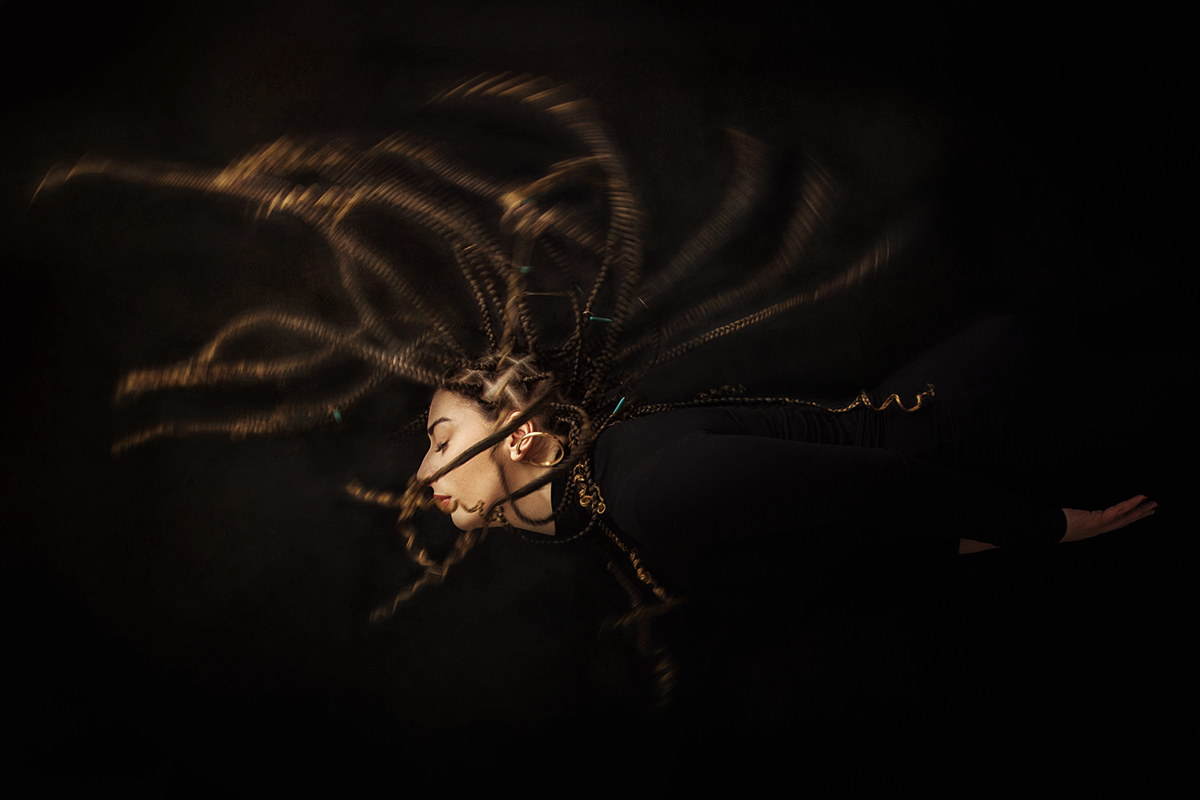| Di grande impatto questo ritratto (fa pure rima). Piccola curiosità .... le trecce di capelli mosse e il viso perfettamente nitido .... sovrapposizione di due scatti? |