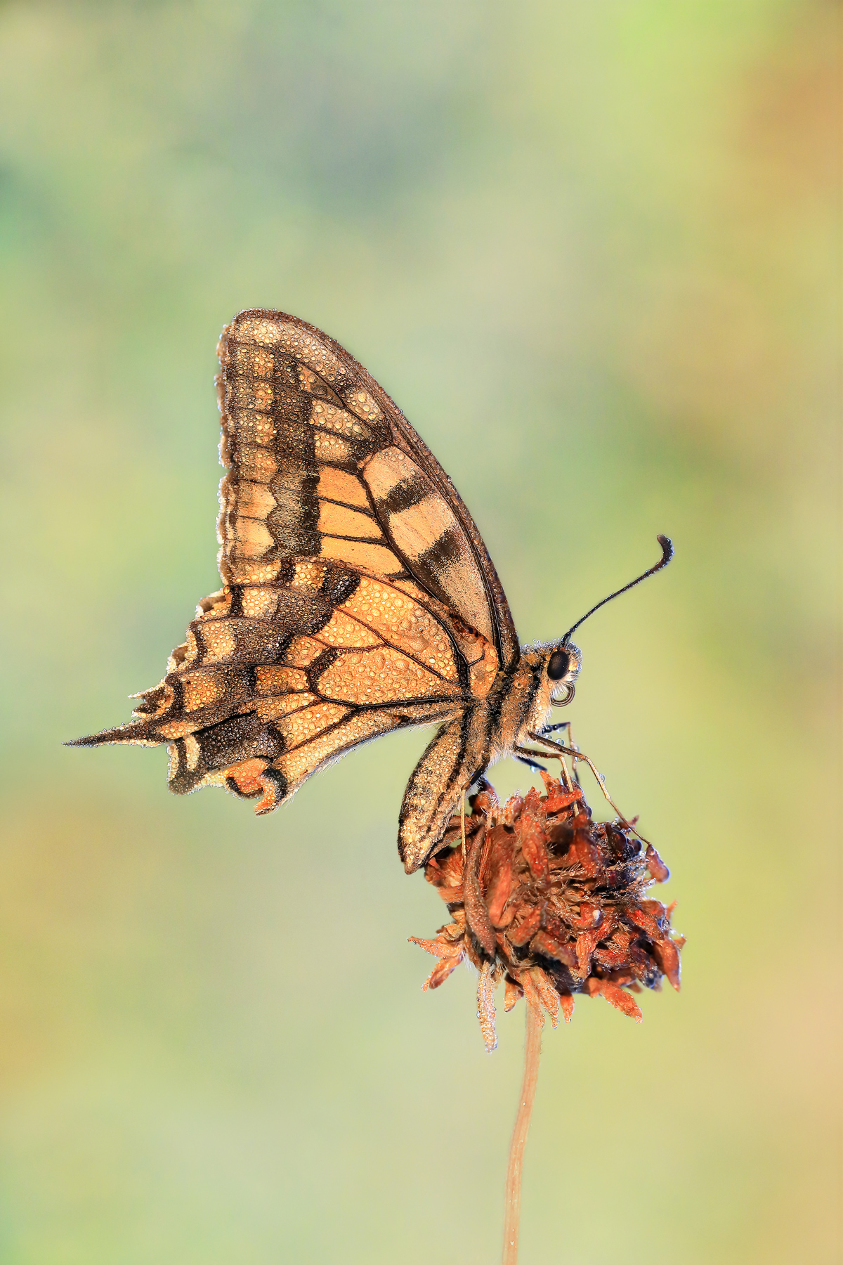 Da non esperto i colori mi paiono molto belli e vividi, mi piace come l'arancio acceso della farfalla e del fiore si sposino con il verde caldo dello sfondo.