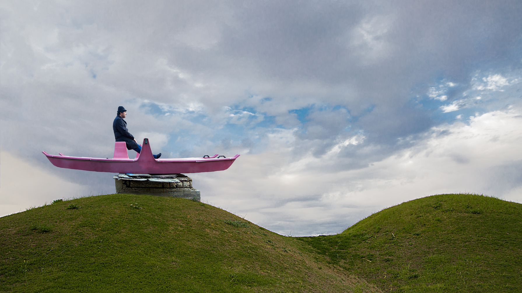 Scherzo! A parte questo, per me l'idea c'è tutta, il senso di smarrimento e di straniamento derivante dall'omino che con il suo mezzo un po' di fortuna, rosa barbie per giunta, affronta queste onde terrene, lo si percepisce, e come per tutte le tue proposte, le domande e i dubbi arrivano: che ci fa li, ha smarrito la giusta via? Ha scelto il suo modo di affrontare i sali scendi della vita?Che cosa sta aspettando e dove sta andando?