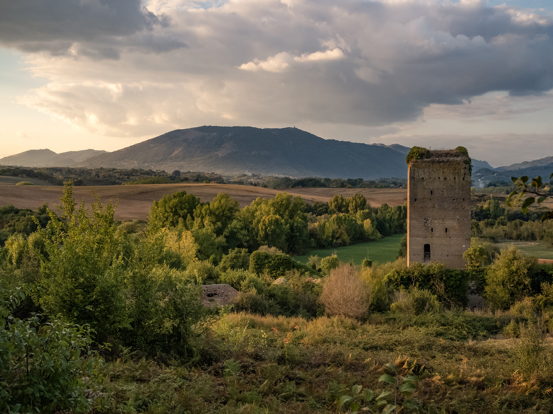 Nobili rovine, vegetazione che le assedia, placido paesaggio dai toni romantici da viaggio in Italia ottocentesco.