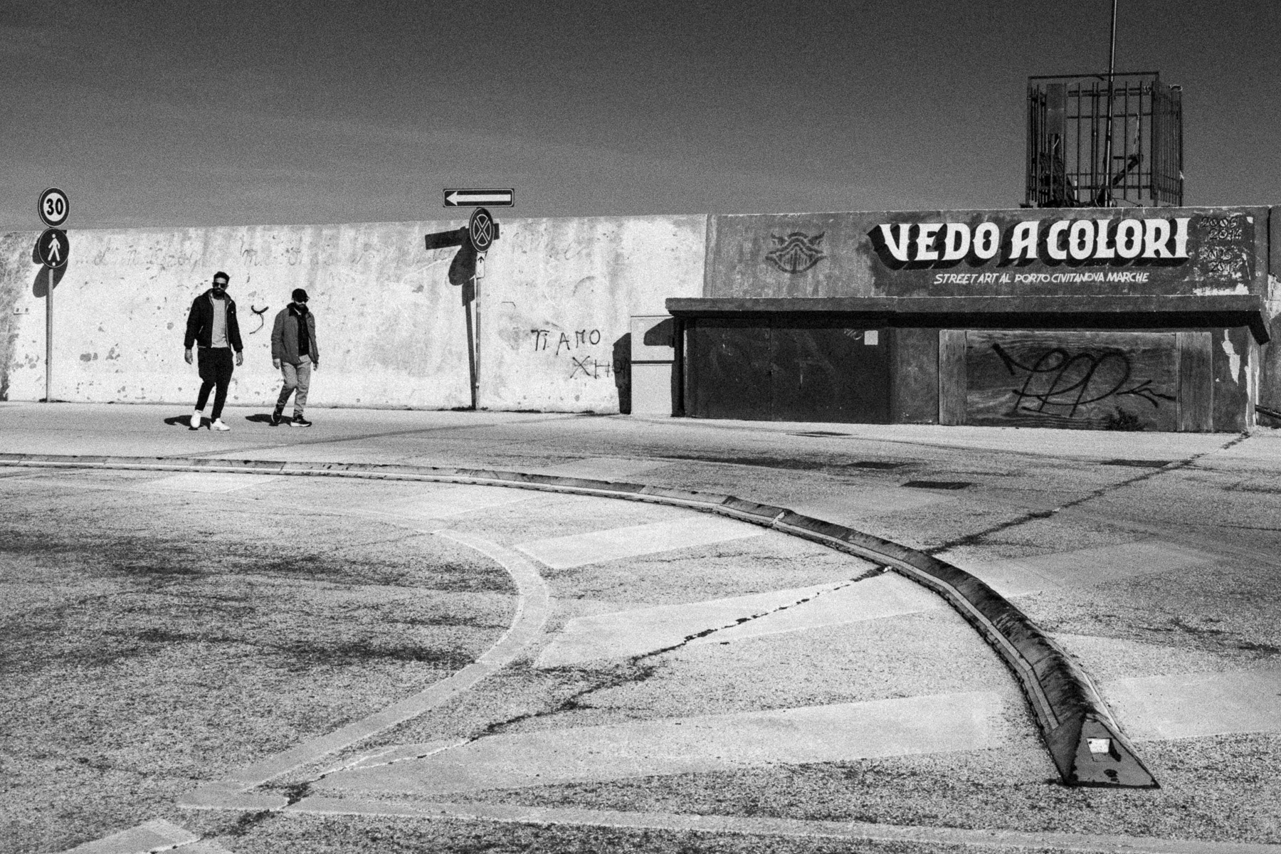 Bella. Ottimo il bianco e nero come anche la scelta compositiva con il cordolo stradale che ci invita a seguirne la forma raggiungendo i due passanti. Mi piace. Un saluto, guido |