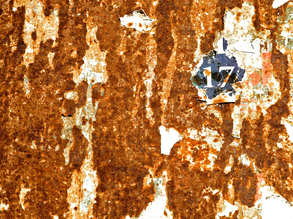 Anche se un po malconcio, il numero 17, si fa largo tra residui di carta e il marrone vibrante della ruggine.