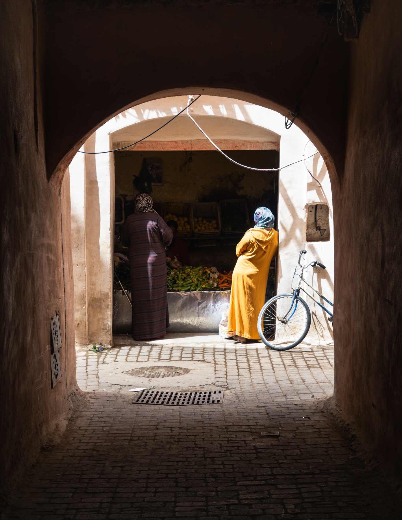 Come giustamente osservato, la scena è molto comune nel dedalo di stradine della medina di Marrakech (ma lo stesso si può dire di molte altre città marocchine).