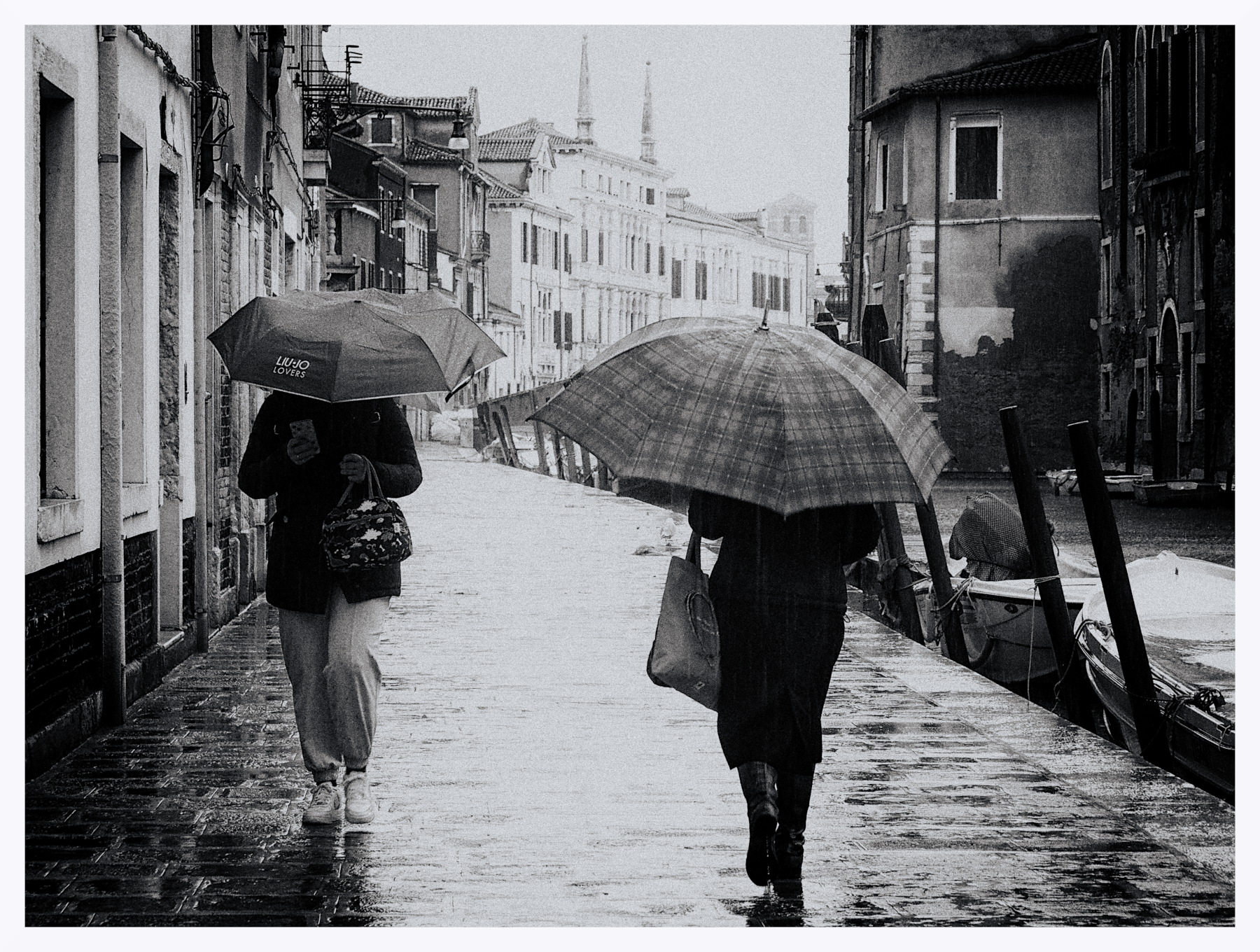 Venezia con la pioggia deve sicuramente essere ricca di momenti interessanti e scorci meritevoli.
