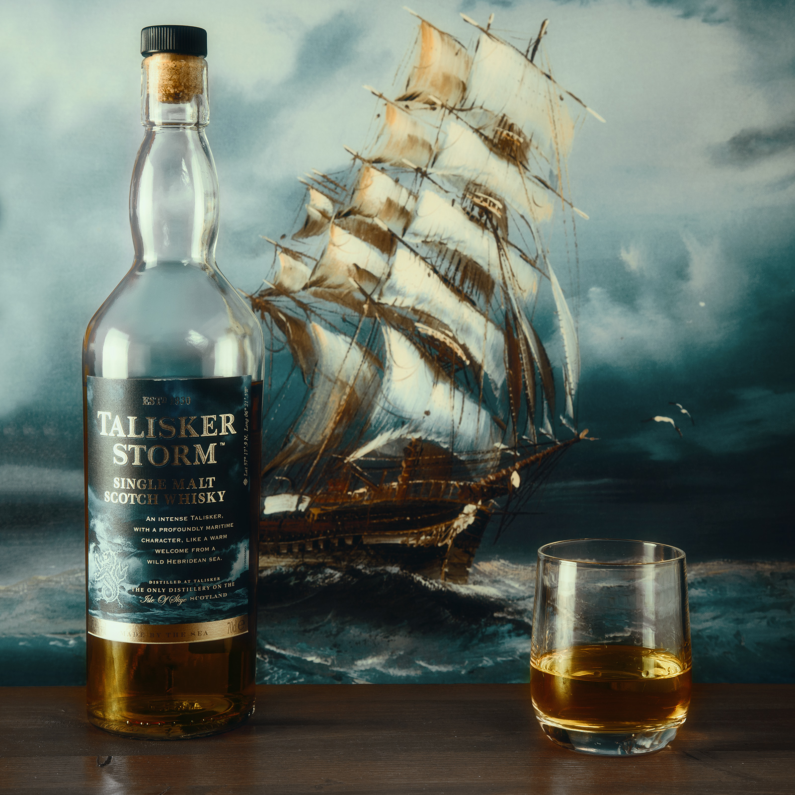 Il veliero nello sfondo ci azzecca tantissimo con la sensazione calda che da sempre rilascia una bella bottiglia di Scotch whisky.