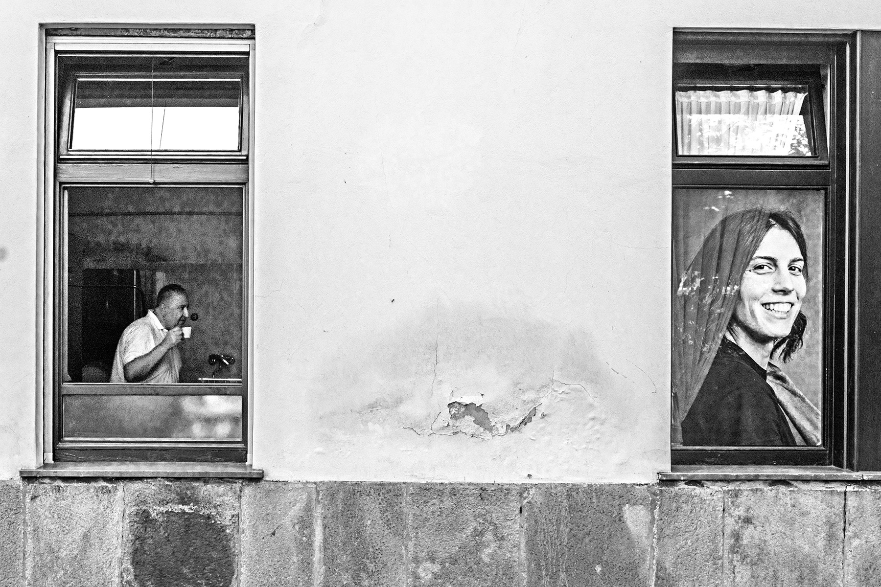 Immagine molto simpatica,quasi un dittico.Il bn in questo caso è maggiormente funzionale ad uniformare la tonalità e sostenere il titolo.Sempre bravissima ed ampiamente meritata la vetrina settimanale. Ciao,Sergio.