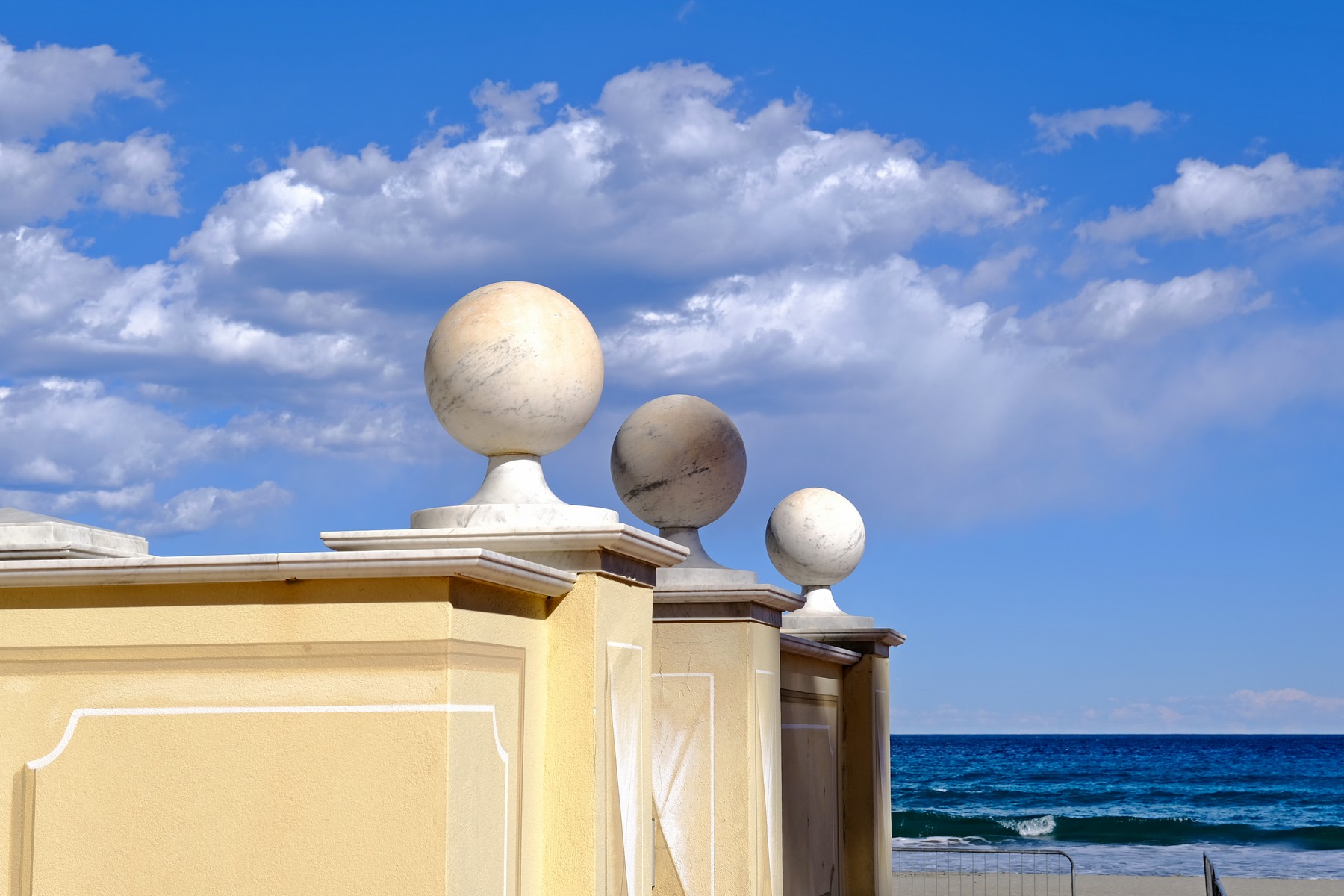 L’idea è buona e la luce bella, ma la composizione è poco precisa… magari stringendo un po’ si poteva evitare di includere inferriata e paletto a destra e parte di un tetto a sinistra, focalizzando maggiormente l’attenzione sulle tre sfere… L’immagine è comunque gradevole, grazie anche ai colori vividi e al cielo movimentato Smile