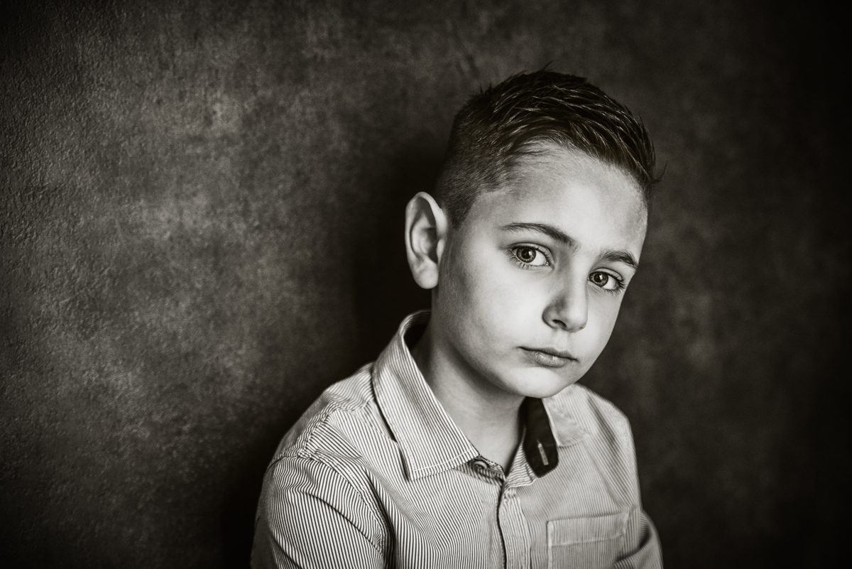 sai che non sono un ritrattista, ma questo scatto lo trovo ottimo, tuo figlio ha occhi stupendi ed hai saputo valorizzarli molto bene con questo bn, La posa leggermente laterale e la testa appena inclinata dimostrano che il ragazzo è abituato ad essere ripreso e sa porsi efficacemente e con disinvoltura davanti alla fotocamera.