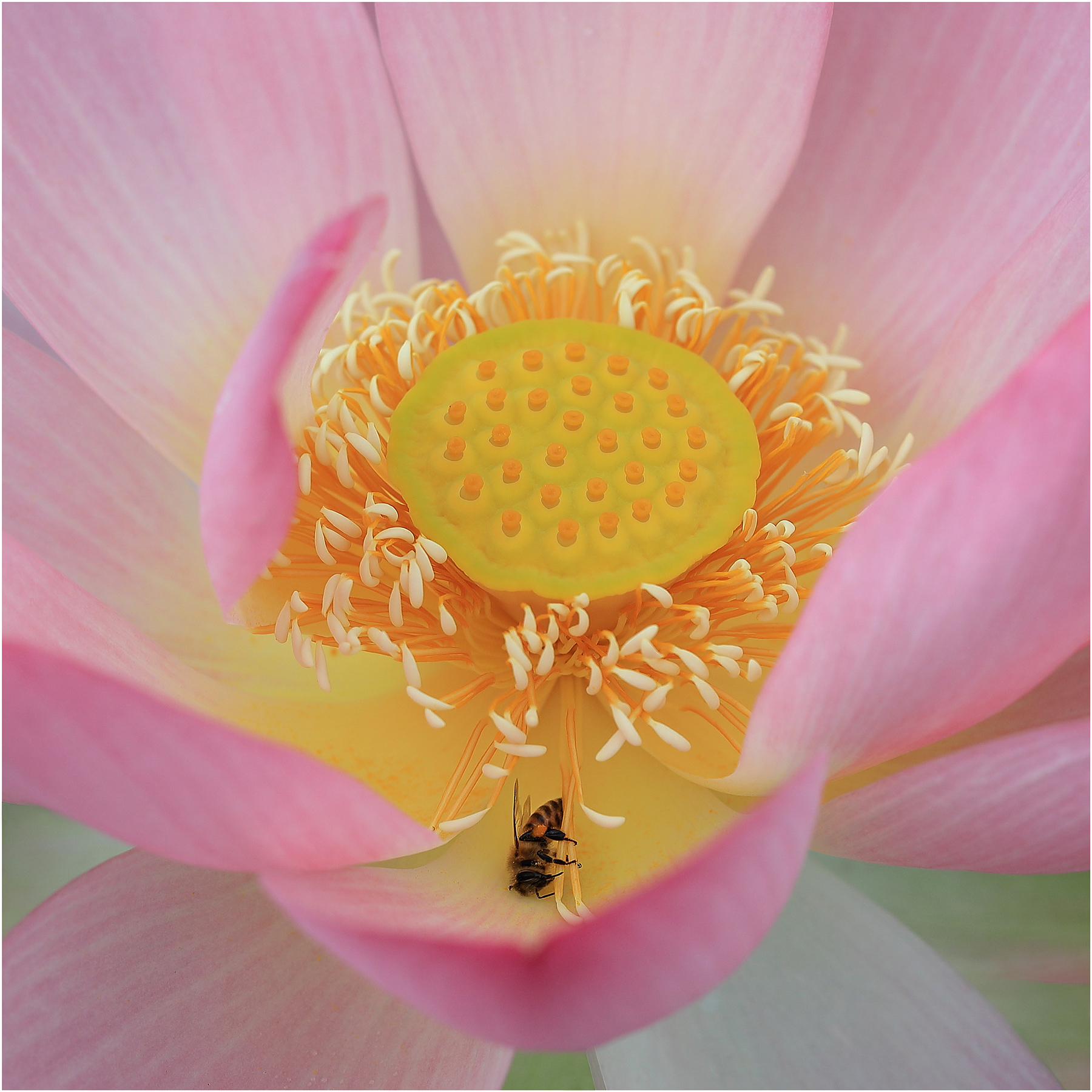 ciao e grazie per il commento, l'ape era attiva (non ho mai ripreso soggetti morti). La posa non è delle migliori, ma non si spostava da sotto il fiore. Qui un altro scatto con ape meglio posizionata ma mi piaceva meno il fiore...