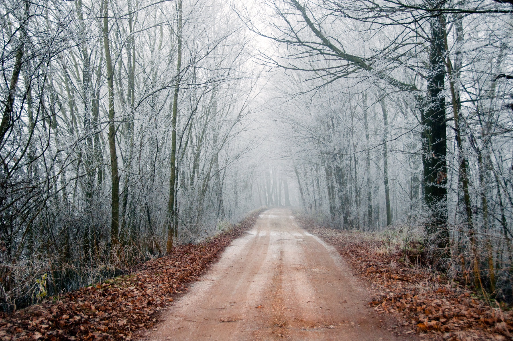 Gli alberi grazie alla brina e alla leggera foschia hanno un aspetto piuttosto tetro che non mi dispiace affatto, le strisce delle ruote sul tracciato guidano lo spettatore verso un finale abbastanza misterioso.