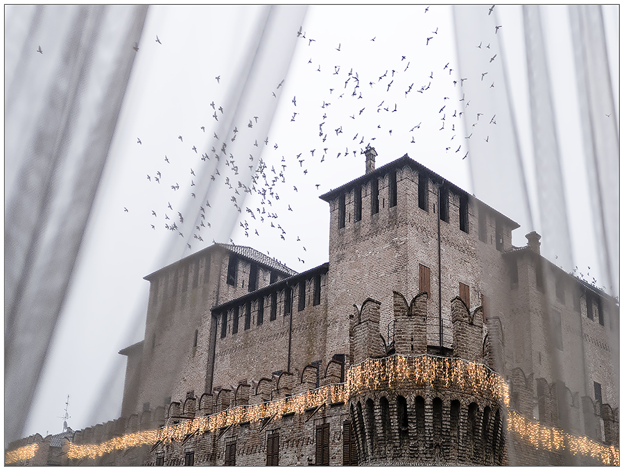 Sarebbe una delle tante foto scattate ad un castello, ma questo volo di piccioni e le delicate tendine rendono questa foto speciale