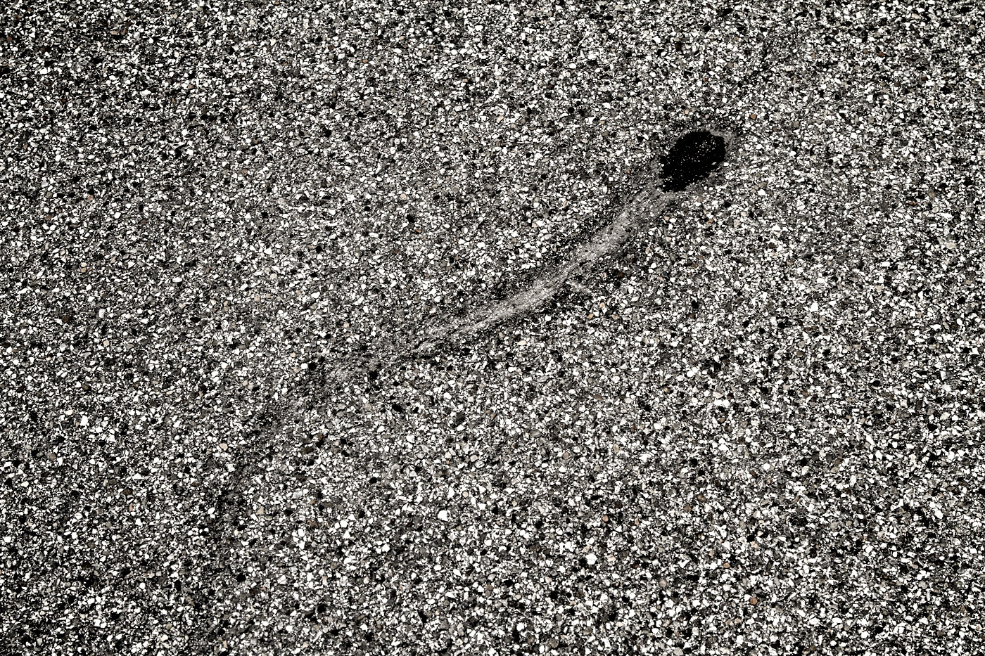 La foto è nata così. Poco distante da casa sulla strada, uscendo dopo una pioggerella, ho notato questo segno sul selciato. Per altro è stata proprio una opportuna asciugatura della strada che ha lasciato un addensamento d'acqua proprio nella capocchia più profonda dell'incisione che ha fatto emergere la forma richiamante lo spermatozoo. Per quante volte passi di lì fino a quel momento non l'avevo mai notata. Questo ci dice quanto la casualità e il momento giusto contino in fotografia per l'esito della stessa. Poi lo spirito d'oservazione fa il resto.