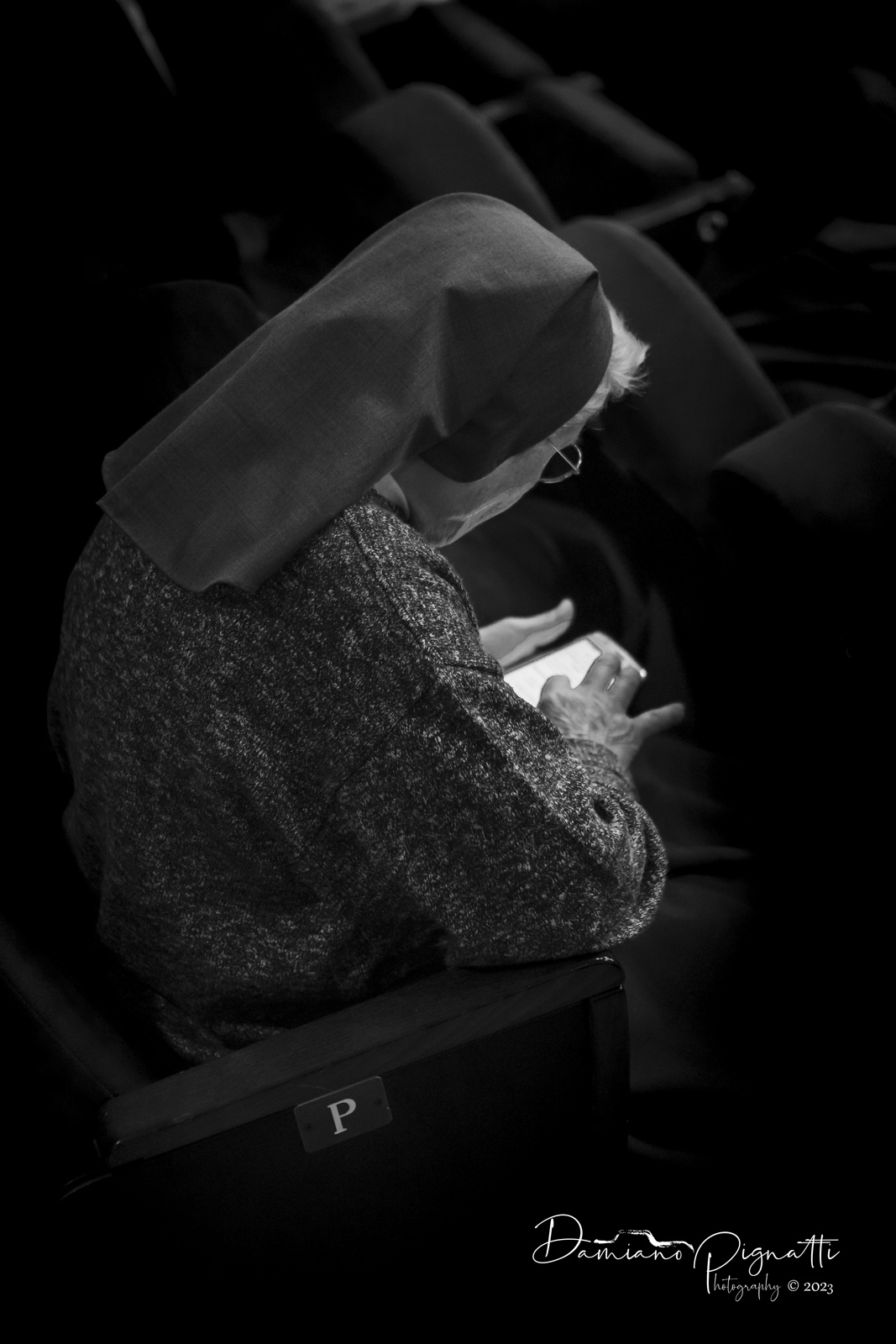 Ho fatto diversi scatti in quella situazione, diverse suore erano intente nella lettura o consultazione di uno smartphone, era un momento con molte attese e quindi è naturale. Ma l'atteggiamento di bambine con un giocattolo che mi ha attirato e trattenuto su loro.