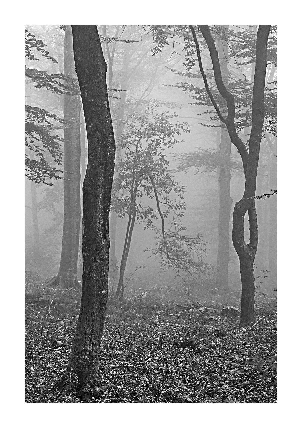Lo scorcio mi piace, è ben composto, con una buona sequenza di alberi, la nebbia dona profondità e crea quell'alone di mistero che tanto affascina lo spettatore.