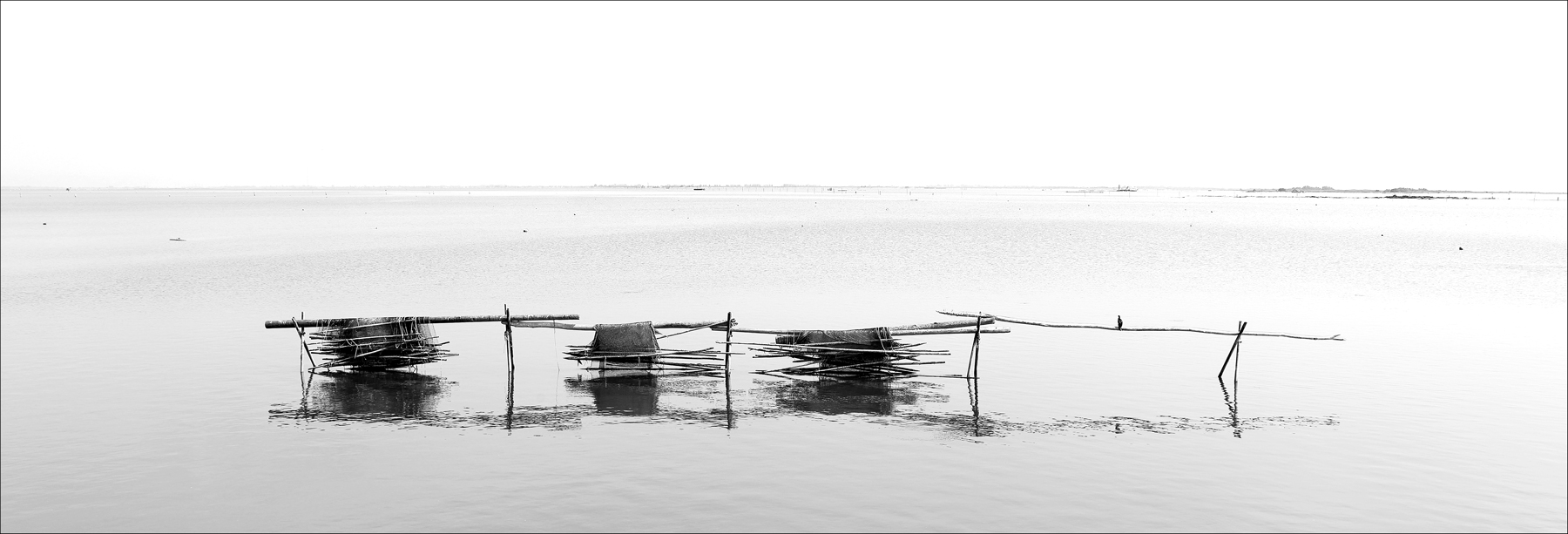 Bella composizione in chiave alta… sorprendono i tre spazi riempiti da legni (?) mentre l’ultimo a destra, libero, ospita un uccellino L’orizzonte sembra un po’ curvo, ma l’immagine è comunque di grande fascino