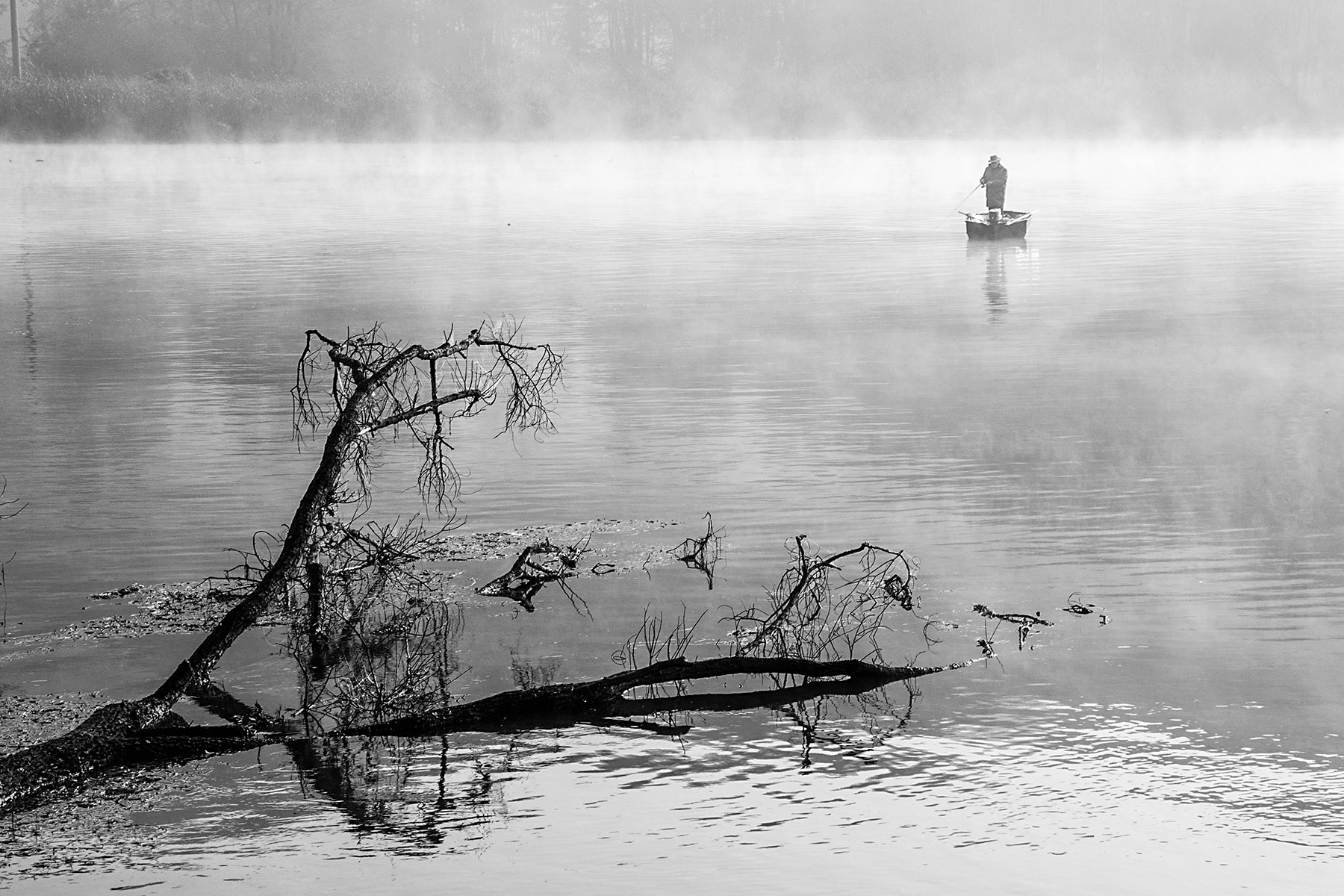 Che bella questa foto. Bella luce, compo e nebbiolina. Fantastico il bn.