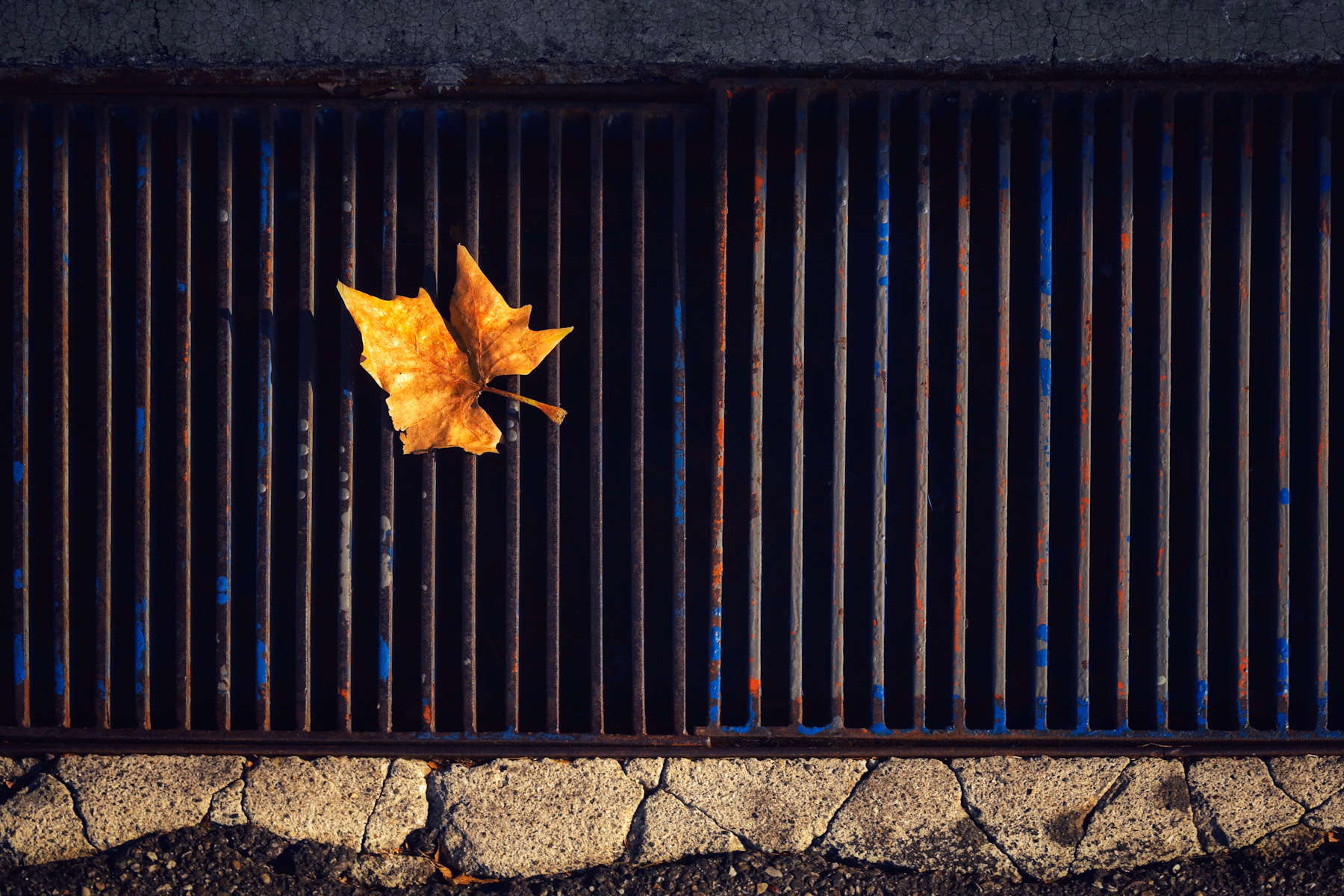 La foglia morta autunnale è un super classico, quello che però differenzia dalla massa questi scatto è la grata su cui poggia, inusuale, sia come sfondo, sia come colorazione.