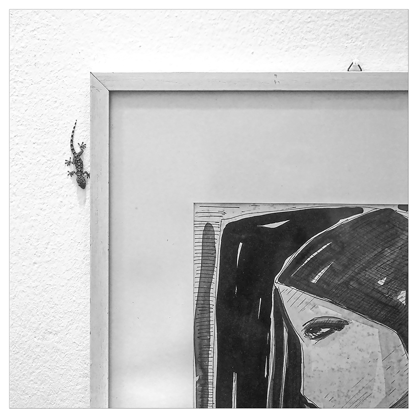 L'occhio del ritratto sembra osservare con apprensione il piccolo geco anche lui fermo e sospettoso.Molto bella la composizione,ottimo bn. Ciao,Sergio. _________________ Sergio Demitri https://www.flickr.com/photos/124946035@N02/ |