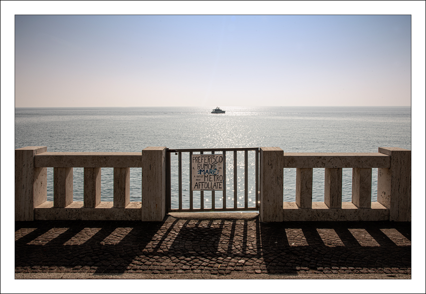Composizione a regola d'arte, una bella luce contribuiscono a fare una bella fotografia, ma la frase sulla ringhiera è fantastica!! Bella bella!  |