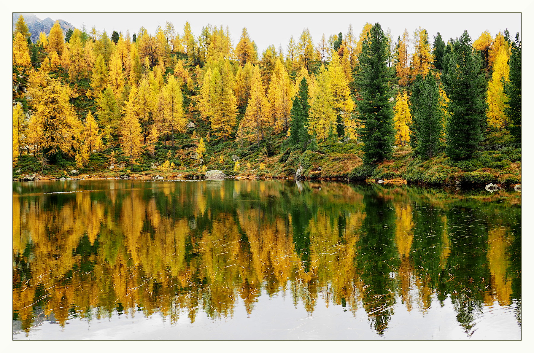 Bellissimi colori autunnali e splendidi riflessi,ottima anche la composizione speculare. Ciao,Sergio. _________________ Sergio Demitri https://www.flickr.com/photos/124946035@N02/ |