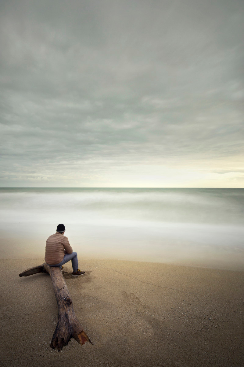 Uno scatto introspettivo, immobile ad osservare il mare reso evanescente dall'uso dei tempi lunghi, un'immagine molto piacevole.