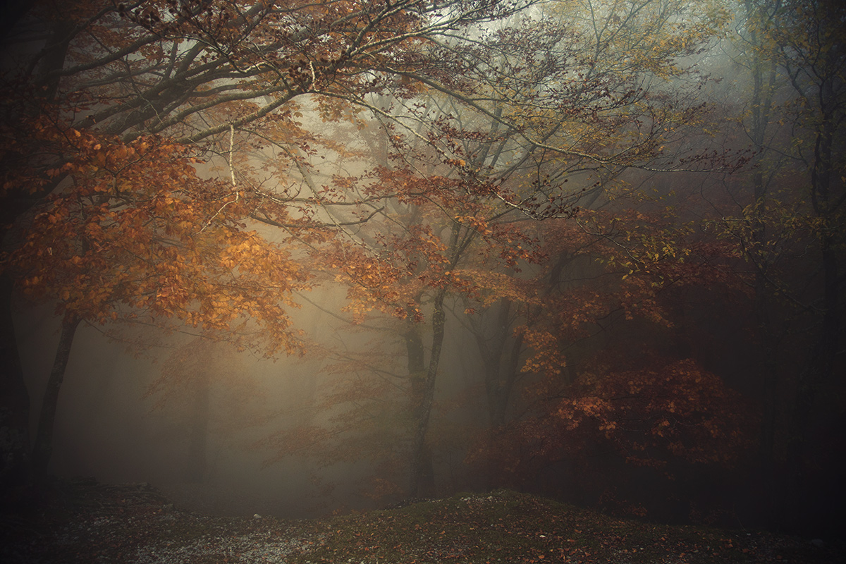 Un autunno raccontato con versi poetici.. con i suoi silenzi i suoi colori e i suoi profumi. Foschia che rende tutto onirico e misterioso.