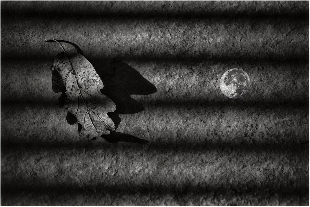 scusami, la luna cosi' "trasparente" no... io l'avrei vista meglio piu' "consistente" con un effetto piu' materico, magari dentro la foglia o come dice Claudio con l'ombra per darle tridimensionalita'.