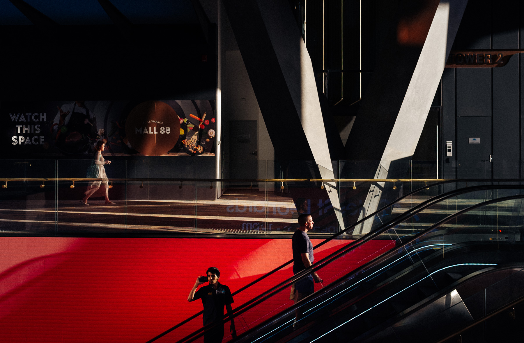 Guardando la foto l'occhio parte dall'uomo in basso, sale la scala e poi percorre la passerella fino a trovare la donna.