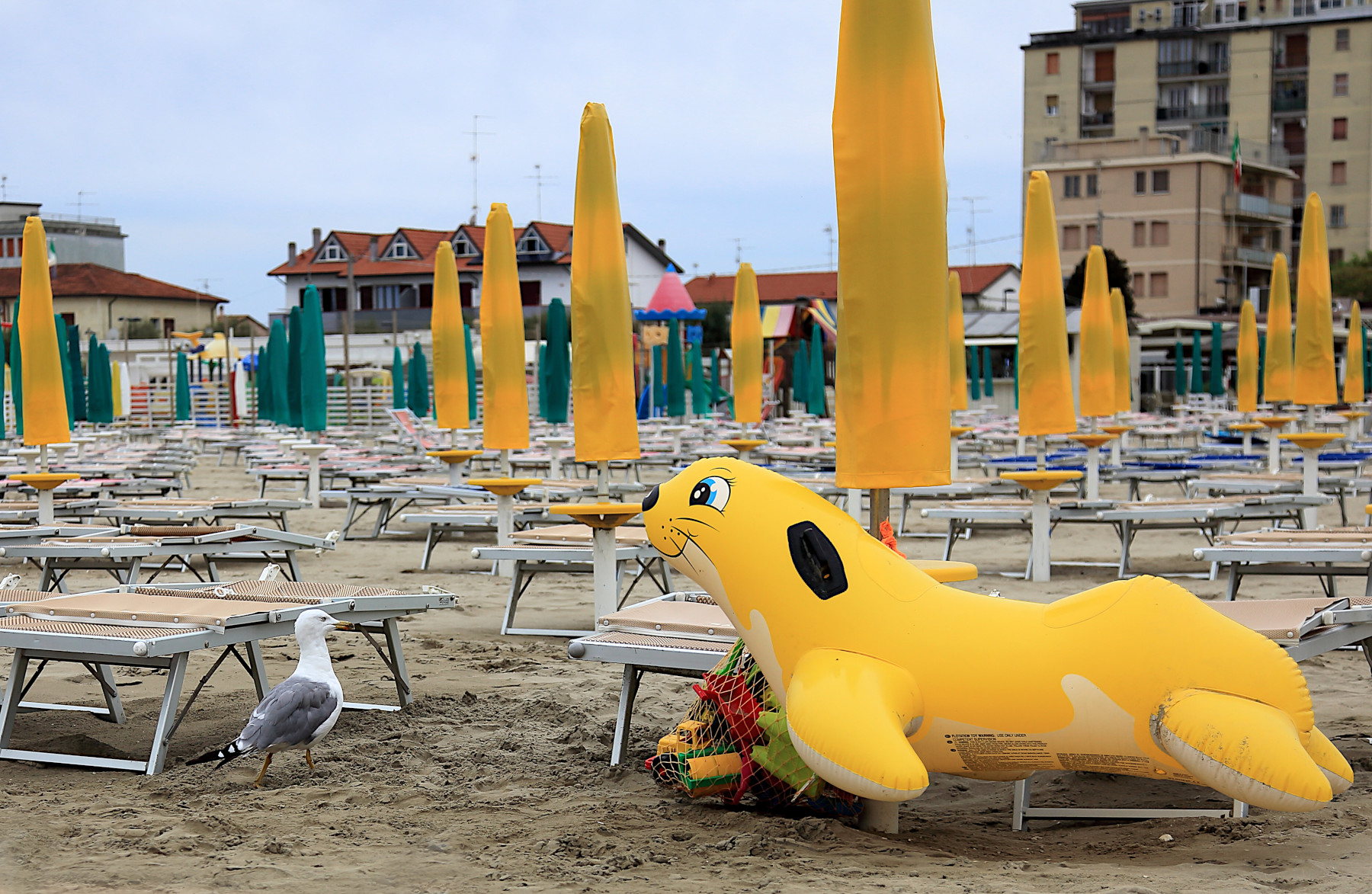 Dì la verità, il gonfiabile te lo sei portato da casa sapendo che avresti trovato i copri ombrelloni gialli!