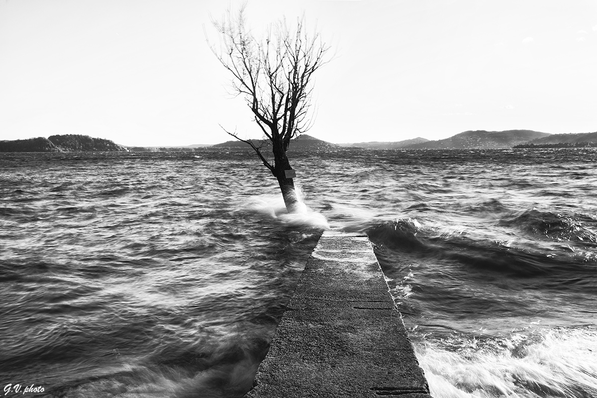 si sentono le gocce d'acqua sul viso e il vento che sferza , ottimo scatto e il b/n è ottimo.
