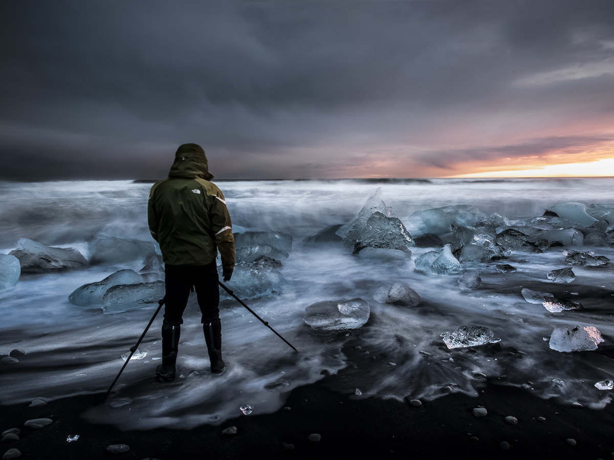 Immagine di grande suggestione, con molti elementi forti, mare, ghiaccio, tramonto (o alba, non so), persona di spalle… e l’insieme non può che essere avvincente Forse un po’ in posa il soggetto, o comunque lievemente preponderante rispetto allo splendido paesaggio, ma la foto è sicuramente fascinosa