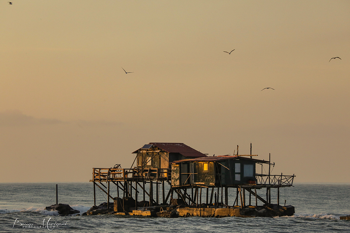 Bellissima luce che colpisce questo trabocco, la buona composizione, i toni del cielo e il volo degli uccelli, rendono quest'immagine molto piacevole.