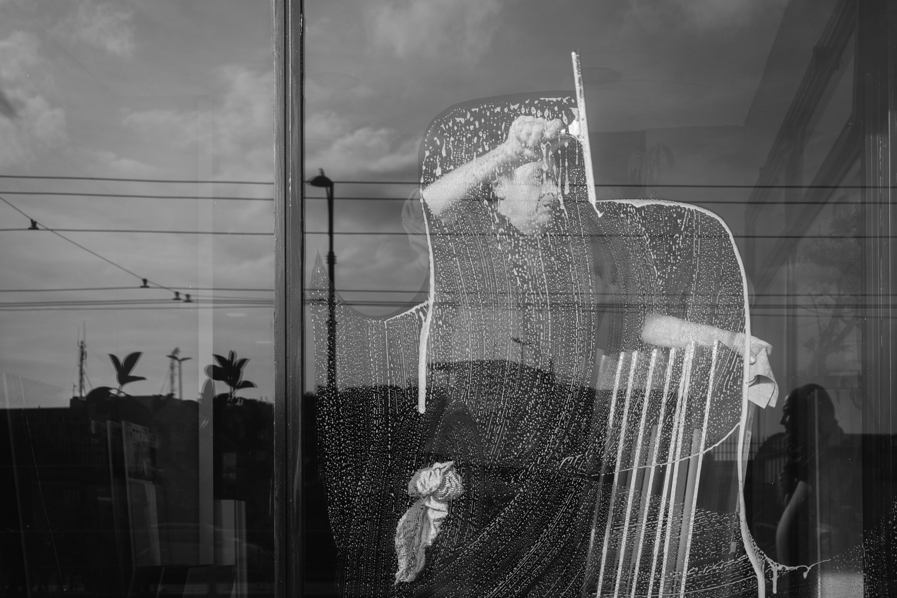 Ottimo il momento di scatto, l'uomo riflesso a destra che s'inserisce benissimo nella scena.