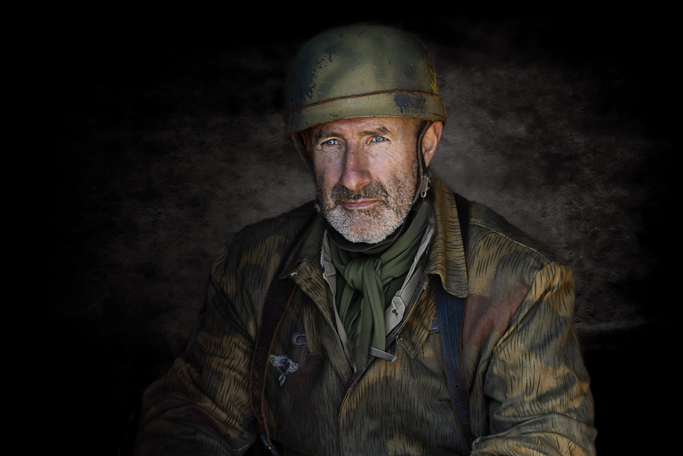 Sembrerebbe un collage: la qualità fotografica del volto (luce, texture, nitidezza) e quella del resto sembrano diverse (si confronti, ad esempio, con il fazzoletto al collo, estremamente sfumato nel chiaroscuro).