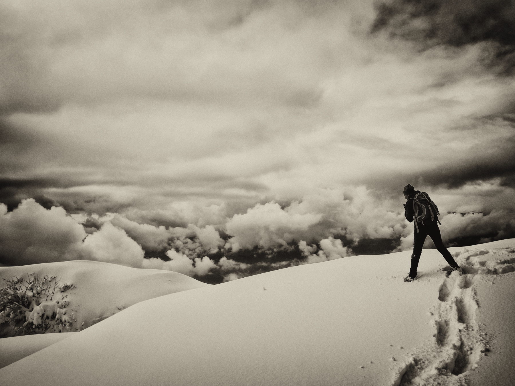 Ti ringrazio Tony per il tuo interessamento e per l'attento contributo lasciato: eravamo in due solitari escursionisti su quella cima immacolata e le tracce presenti erano solo le nostre. La posizione titubante indica una certa paura nello sporgersi da quella ampia gobba nevosa sospesa su ripidi pendii. Ho scelto il viraggio seppia per il mio amore per le vecchie foto di pionieri alpinistici, forse sarebbe andata meglio una maggior luminosità verso i bianchi. Un saluto, Francesco _________________ Fotocamere Olympus OMD e PEN, Panasonic G3. Software GIMP