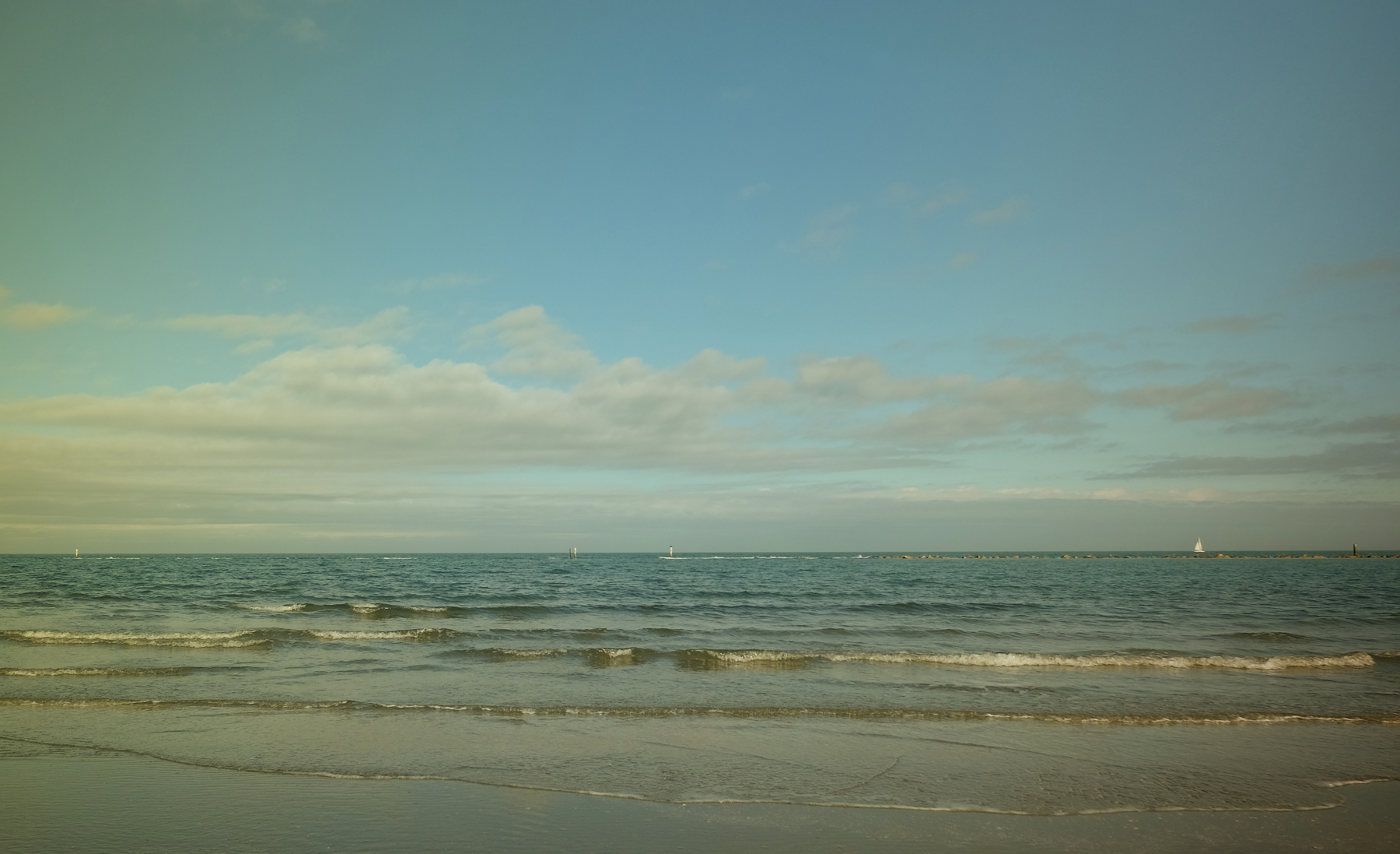 Cielo acqua e quasi niente più. In uno stile cromatico ed interpretativo che ti appartiene e rende i tuoi lavori riconoscibili.Colpisce la forza che ha la presenza della barchetta, seppur piccina all' orizzonte. Un bel senso di quiete. Ciao