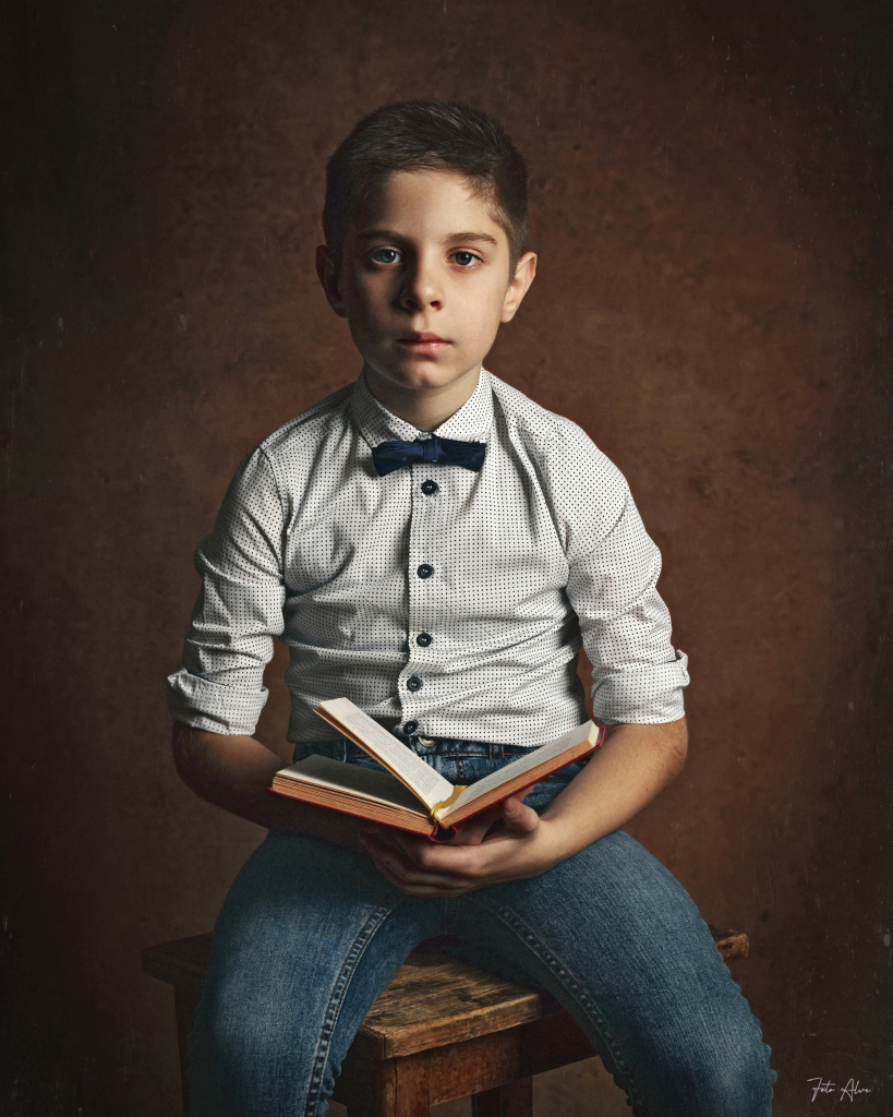 Scatto ben articolato, l'abbigliamento un po' demodè di Teo ben si adatta all'espressione seriosa e da piccolo adulto.