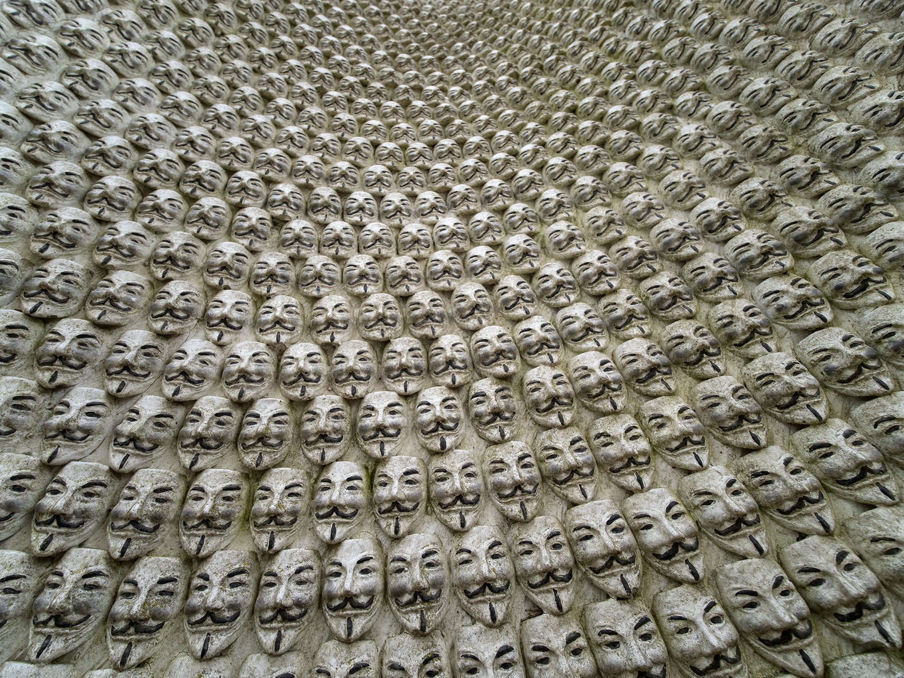 Ipnotica ed inquietante la maschera di Guy Fawkes replicata all'infinito.