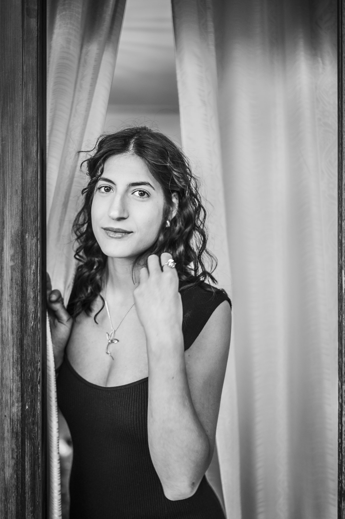 Naturale, semplice e bella, con un sorriso dolce e un filo timido. Un bn molto gentile che ben si addice. Anche io ho la sensazione che il braccio così in primo piano assuma delle dimensioni un po' importanti .