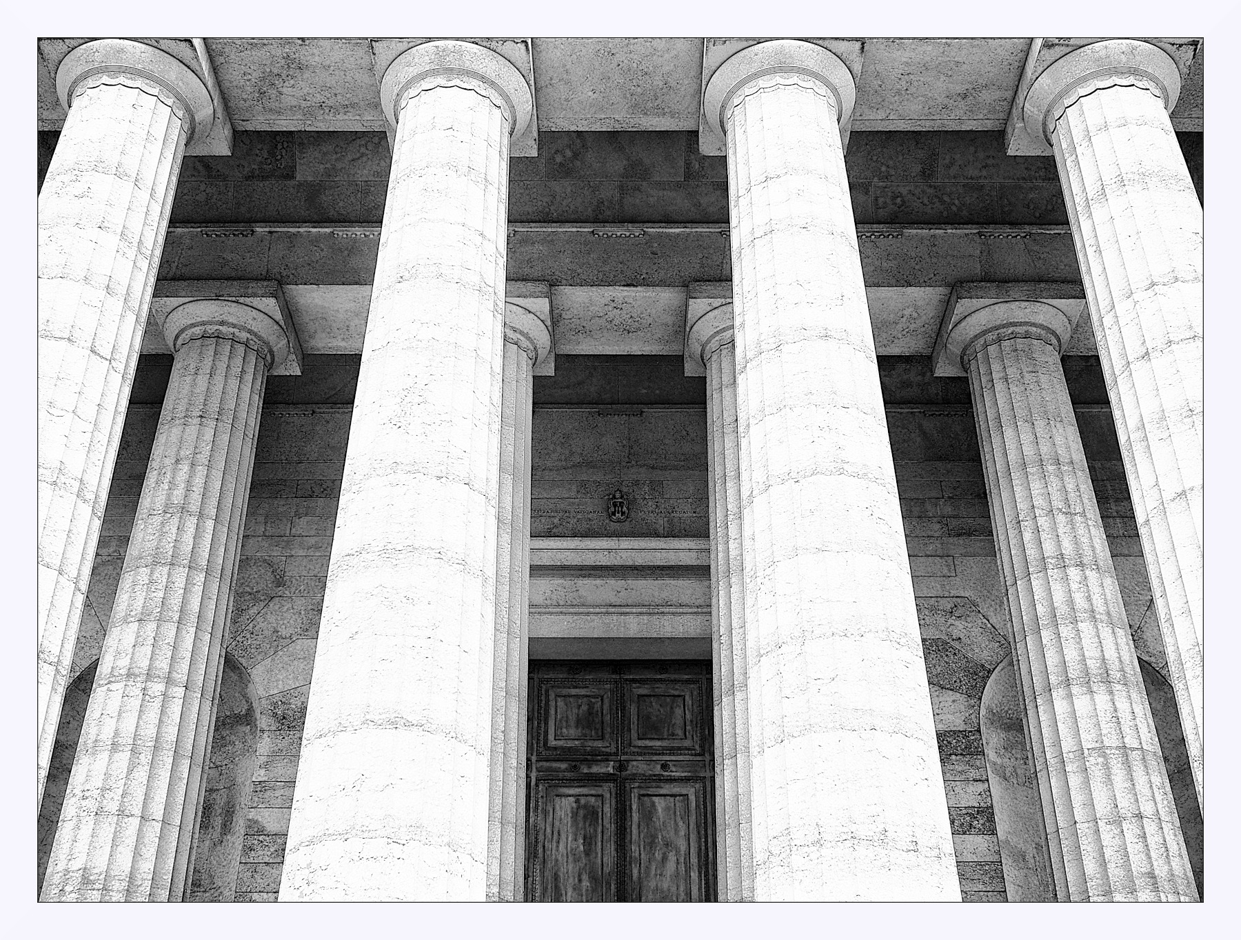 Per le difficoltà di ripresa dovute alla prospettiva hai fatto il massimo in termini di composizione..mettendo il più possibile nell inquadratura in modo ordinato....vedo tanto rumore ..ma forse dovuto ad una post aggressiva nel convertire in bn...un buona immagine