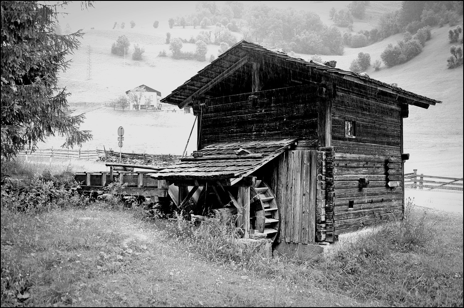 Ottimo e adeguato bianco e nero per questo sguardo alpino su un manuffatto che oggi ricorda tempi di attivo utilizzo della forza dell'acqua. Un saluto, Francesco _________________ Fotocamere Olympus OMD e PEN, Panasonic G3. Software GIMP